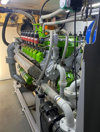 In House Developed CHP – Converts biogas into electricity and heat with high efficiency and low operating costs.